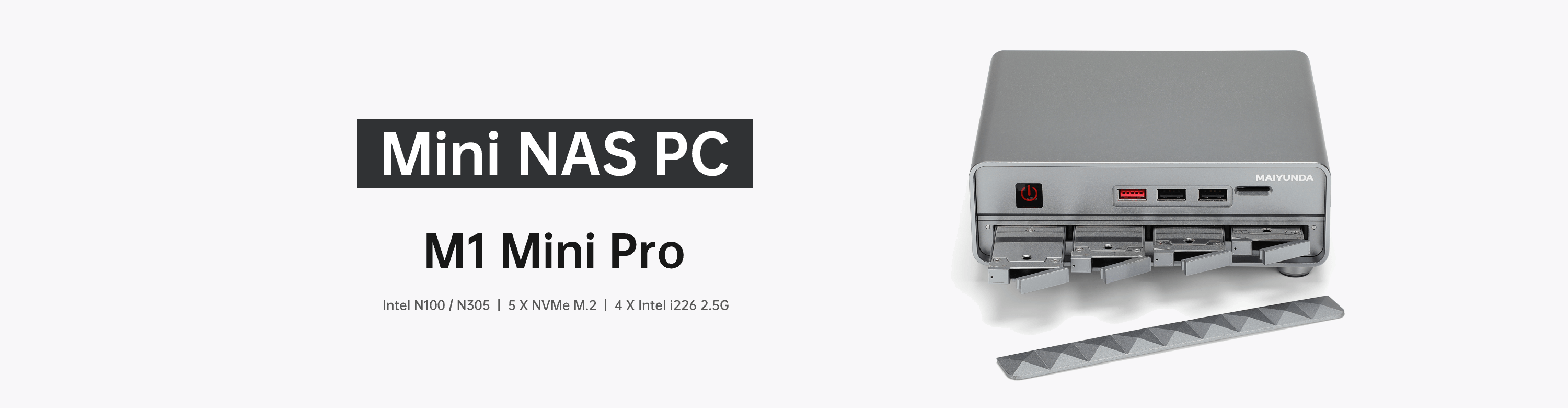 Maiyunda M1 Mini Plus Series Mini NAS (Intel N100/N305, 4×2.5G Ports, 5-Bay All-Flash)